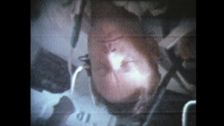 An unscheduled 16-minute television transmission was recorded at the Goldstone Tracking Station starting at 10:32 GET. The tape was played back at Goldstone and transmitted to Houston starting at 11:26 GET. The video, assumed to be a test for the next day's broadcast, showed Earth out the CM window plus a sleeping Buzz Aldrin.